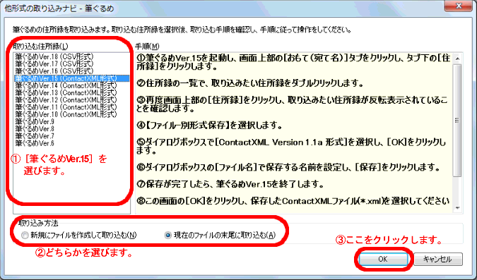 旧バージョンの住所録取り込み方法について 筆ぐるめ