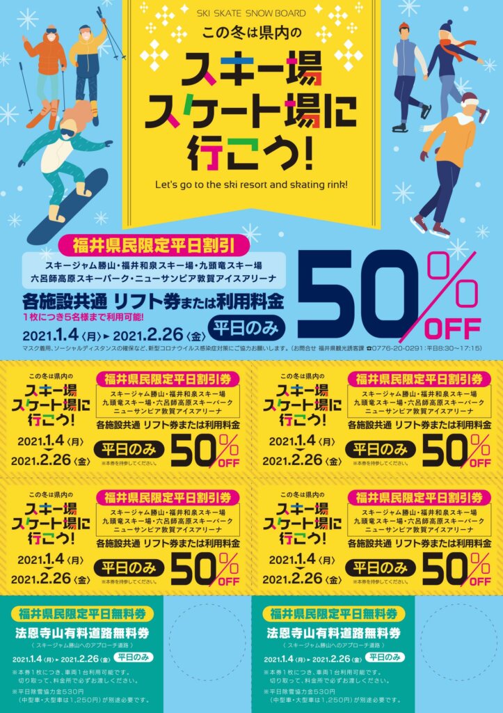 割引券が必要です 福井県民平日限定 リフト半額and有料道路無料キャンペーン Skijam スキージャム勝山 西日本最大級のゲレンデ