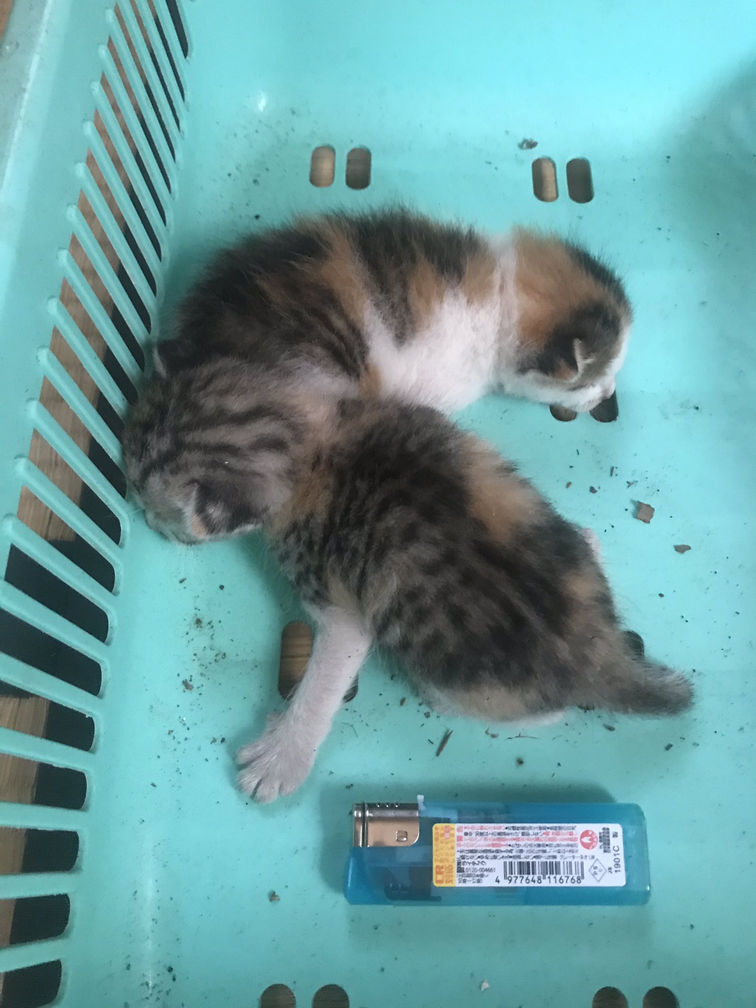 いたさん 緊急 捨て猫を保護しました 拡散希望 三連休で九州 熊本の実家に帰省しています 昨夜 自宅の前に生まれたばかりと思われる子猫が2匹捨てられていて 今 保護しています 熊本の動物保護センターに電話しましたが 休日でした 両親は